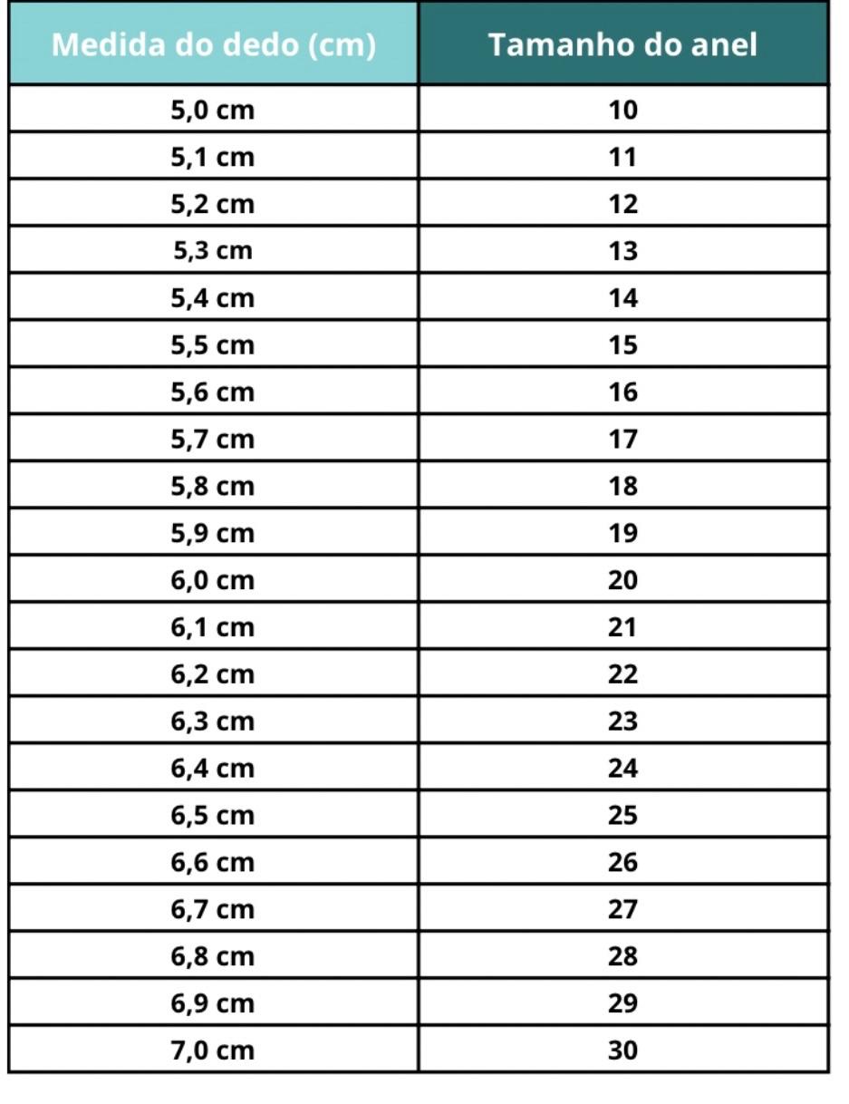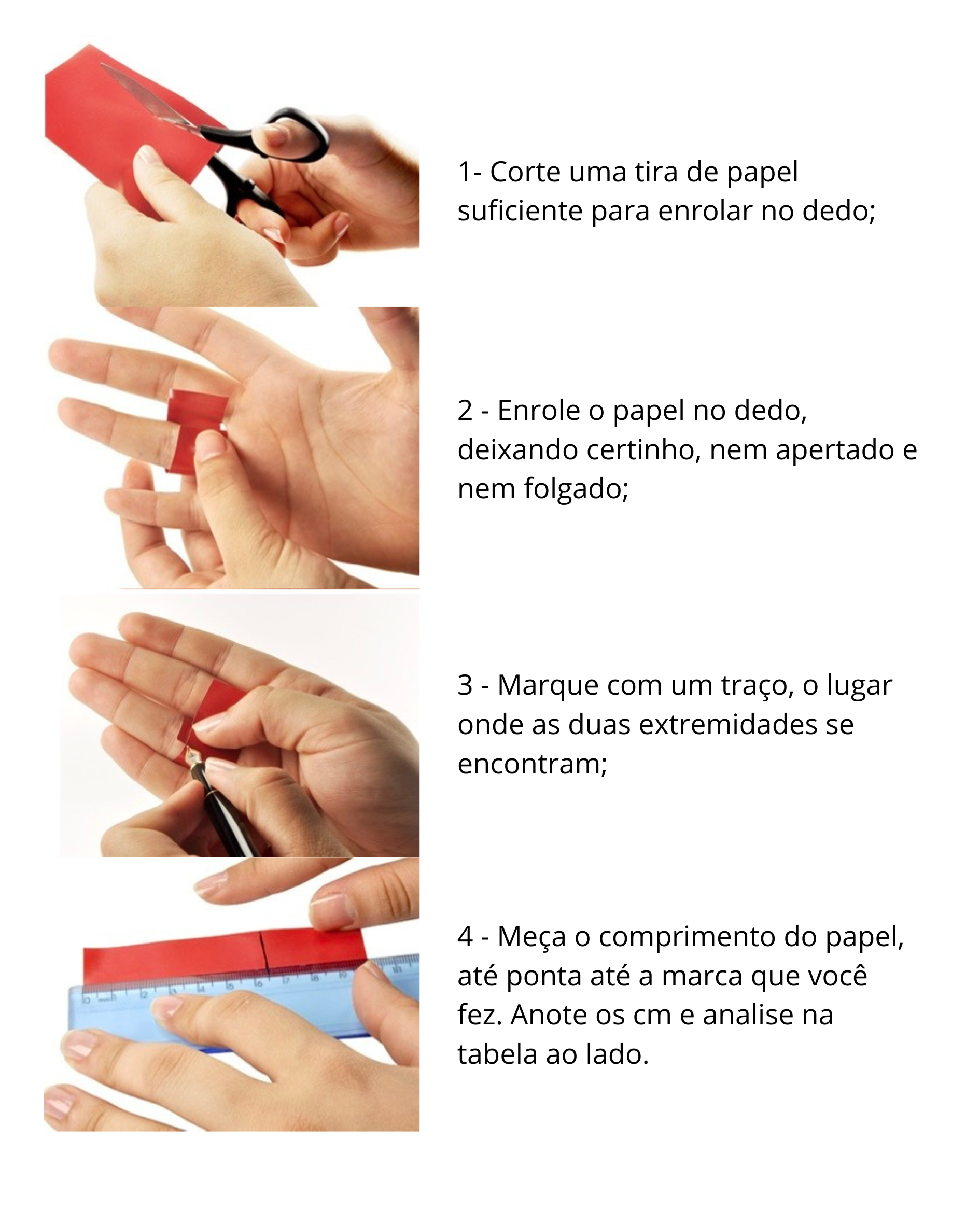 TABELA DE MEDIDAS (ANEL)                                        COMO MEDIR
